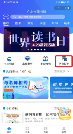 3、点击“学习打卡”进入活动页面,完成每日打卡及读书任务